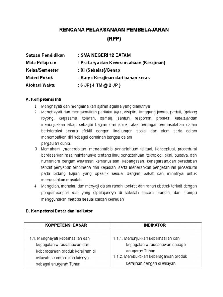 RPP PKWU KLS XI KERAJINAN KD 3 7 4 7 docx RENCANA . Sumber Gambar : www.coursehero.com